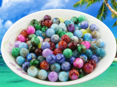 一般來說彩色玻璃珠并不是很大,直徑在1.5~5厘米之間,大多數(shù)都是透明的,而在顏色上則會在表面、內(nèi)部等有各種不同的顏色。在工廠制作時,首先需要將玻璃珠的原材料融化,也就是在高溫的環(huán)境下融化二氧化硅。然后再結(jié)合實際顏色的需要,將不同顏色的二氧化硅融合在一起。接著將融化后的玻璃按實際要求的尺寸進行裁剪。在完成裁剪后,玻璃珠會直接進入滾動溝槽內(nèi),在溝槽滾動的過程中,帶動玻璃珠滾動。然后再經(jīng)過一段相對較長的導(dǎo)軌,隨著玻璃做的滾動,其溫度也會不斷的下降。冷卻后就形成我們看到的彩色玻璃珠了。
